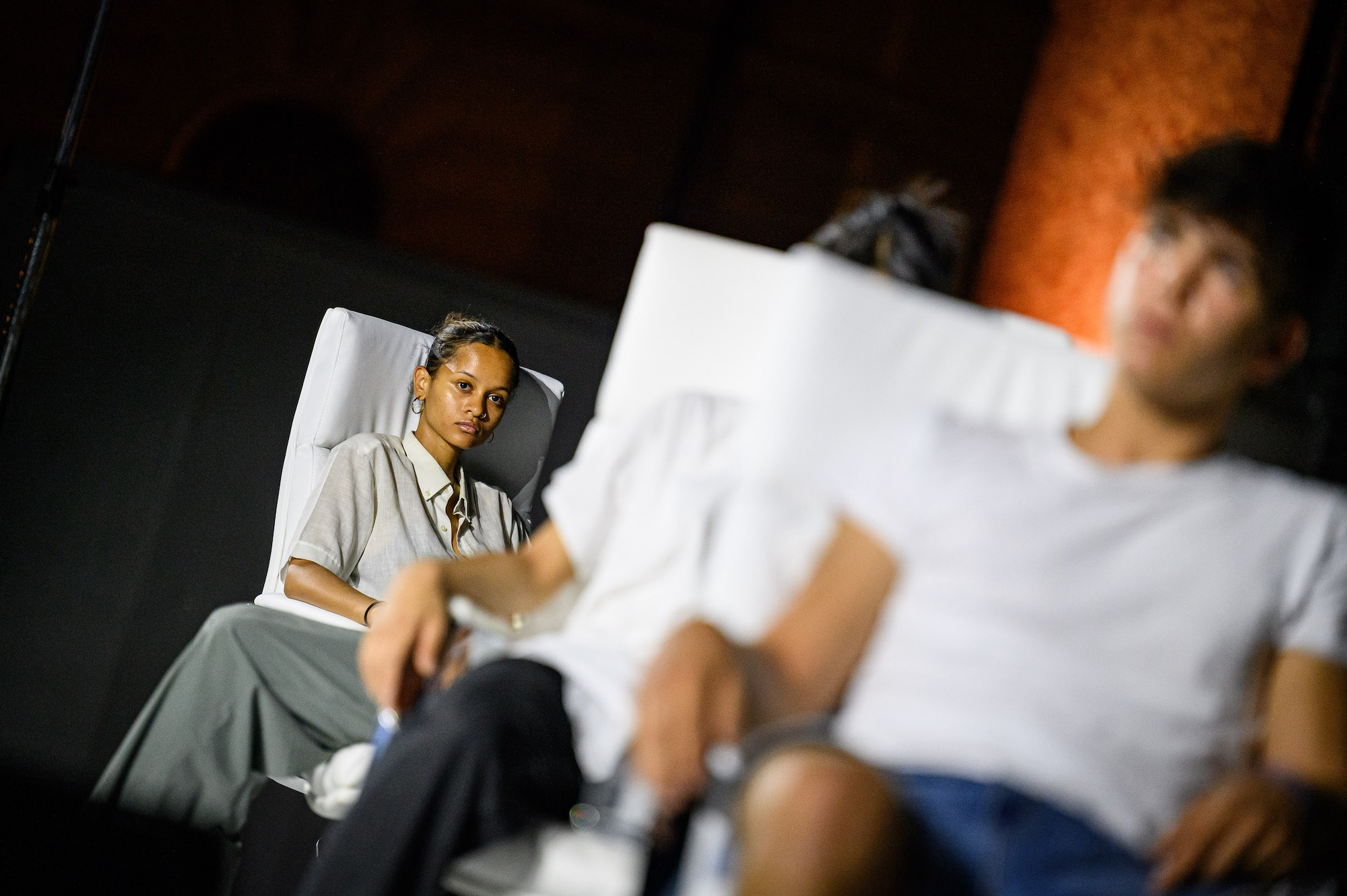 Ateliersi invites the audience to an imaginative experience composed from Daniele Del Giudice’s writing and a concert of gazes that manifests itself on stage by resonating with his words.