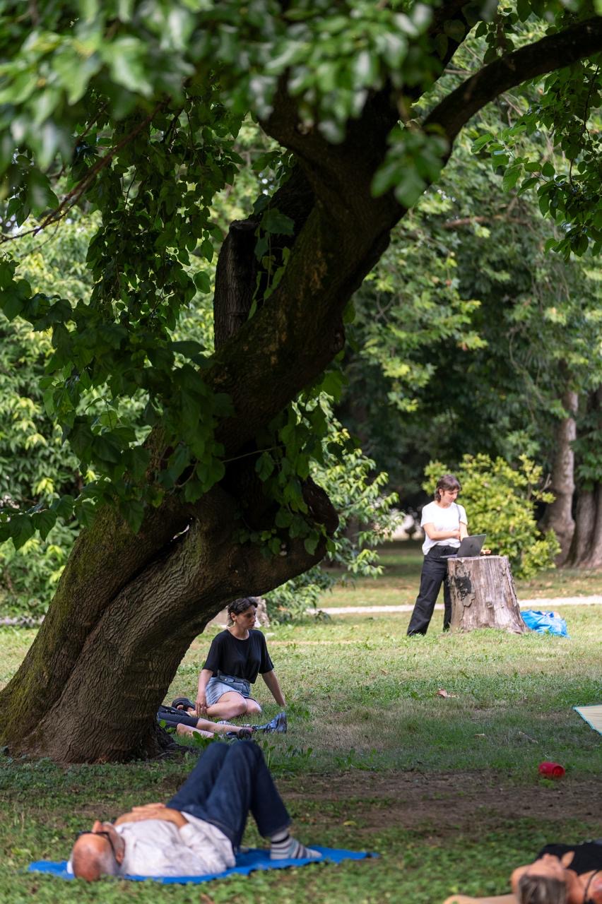 Foto in galleria sono di Alice Durigatto (scattate durante Dialoghi / Residenze delle arti perfomative a Villa Manin a cura del CSS Teatro stabile di innovazione del Friuli Venezia Giulia) e di Ruben Vuaran (scattate durante la residenza al Festival In/Visible Cities a Gradisca d’Isonzo).