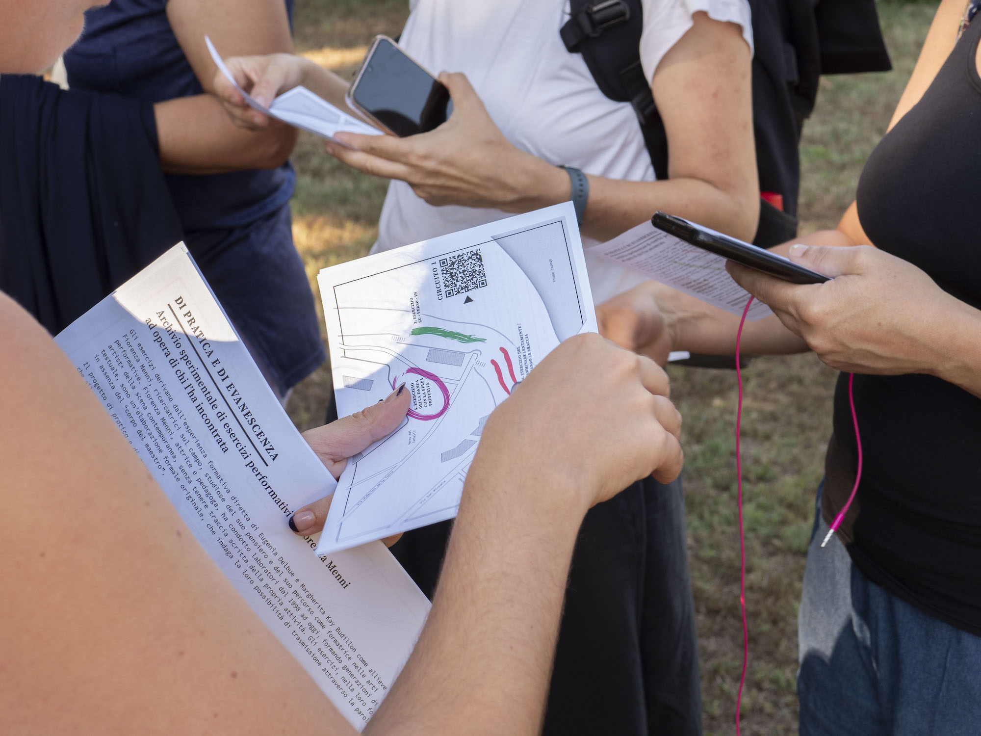 Fiorenza, attrice, regista e pedagoga, ha condotto laboratori dal 1998 ad oggi, formando generazioni di artist_ della scena contemporanea, senza tenere traccia scritta della propria attività. Gli esercizi, nella loro forma testuale, sono un’elaborazione formale originale di Eugenia e Margherita, che indaga la loro possibilità di trasmissione attraverso la parola, in assenza del “corpo del maestro”.